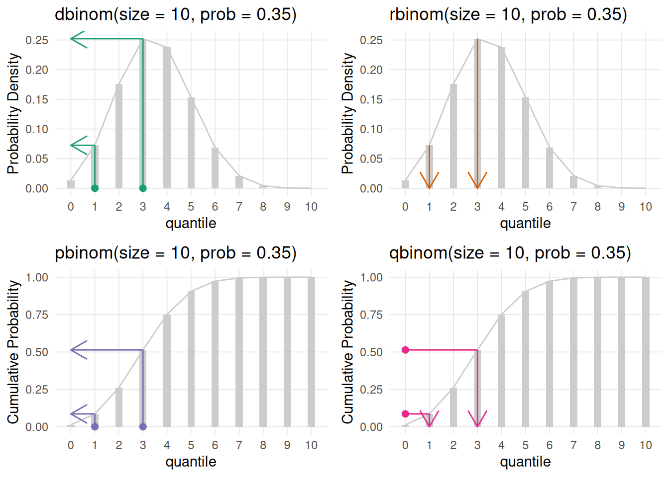 function does not have points since this simply returns random values from that distribution). The arrows correspond to what that function will return.